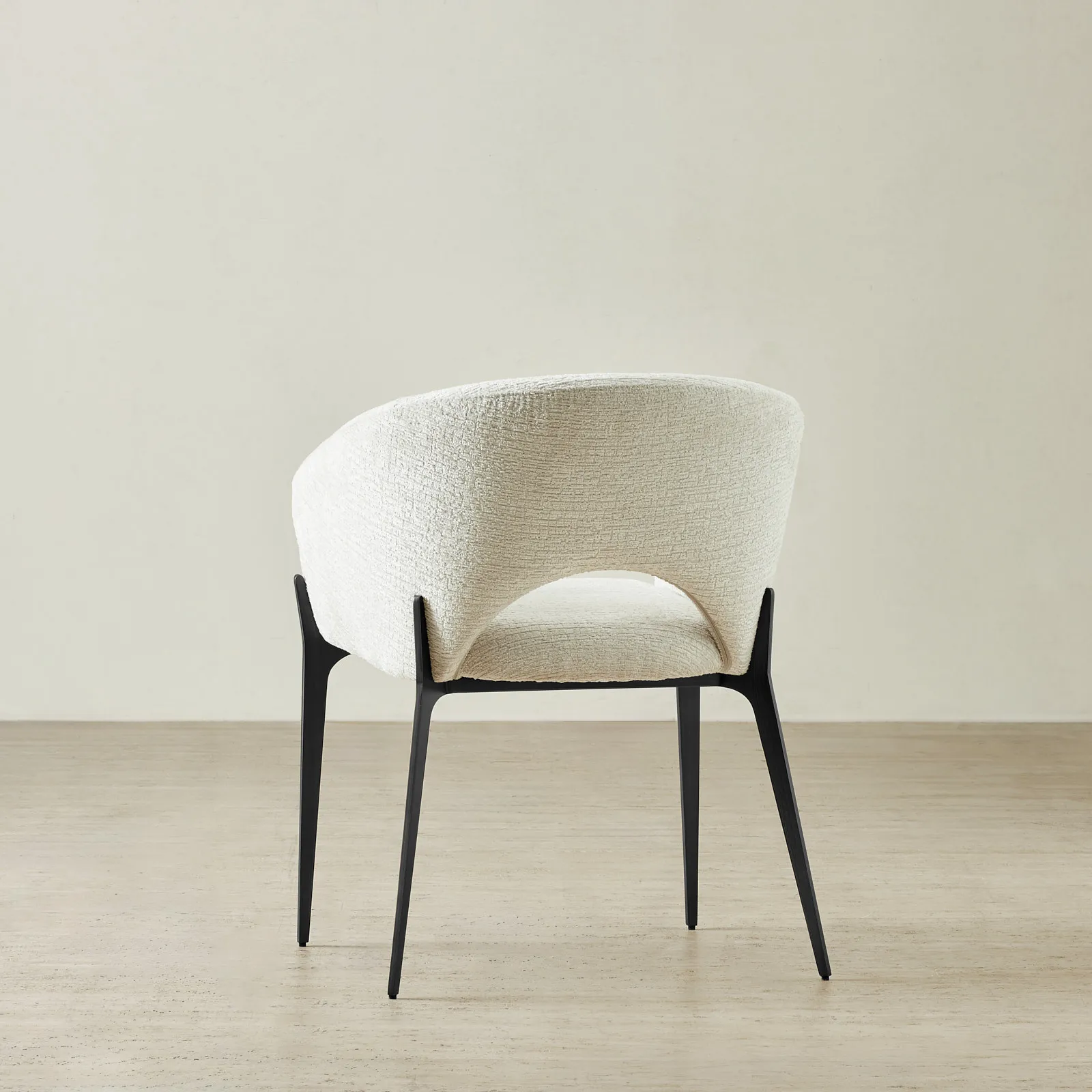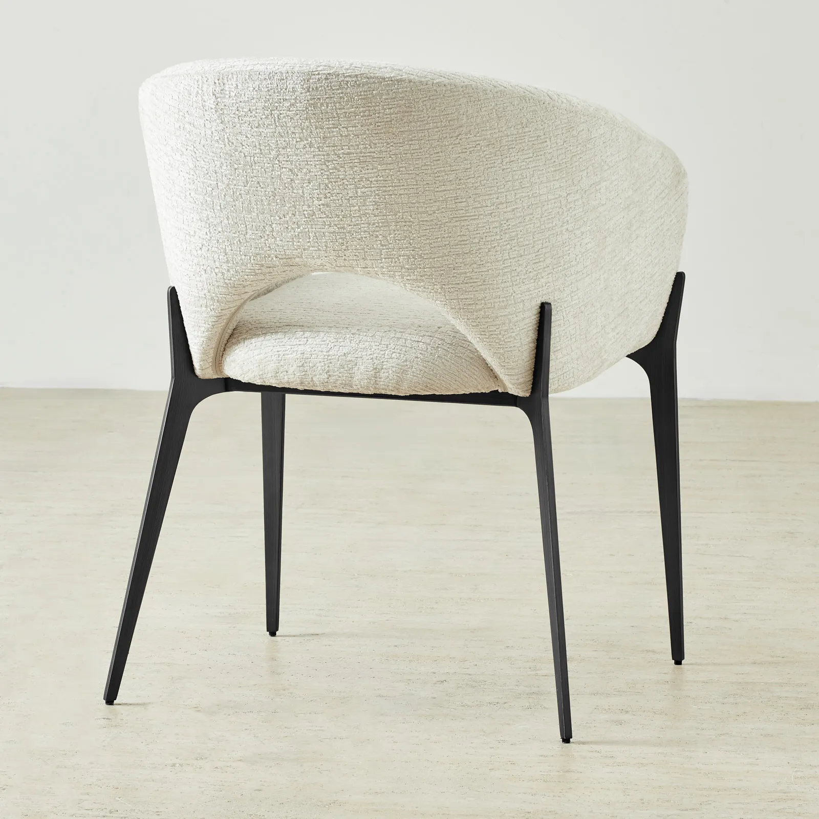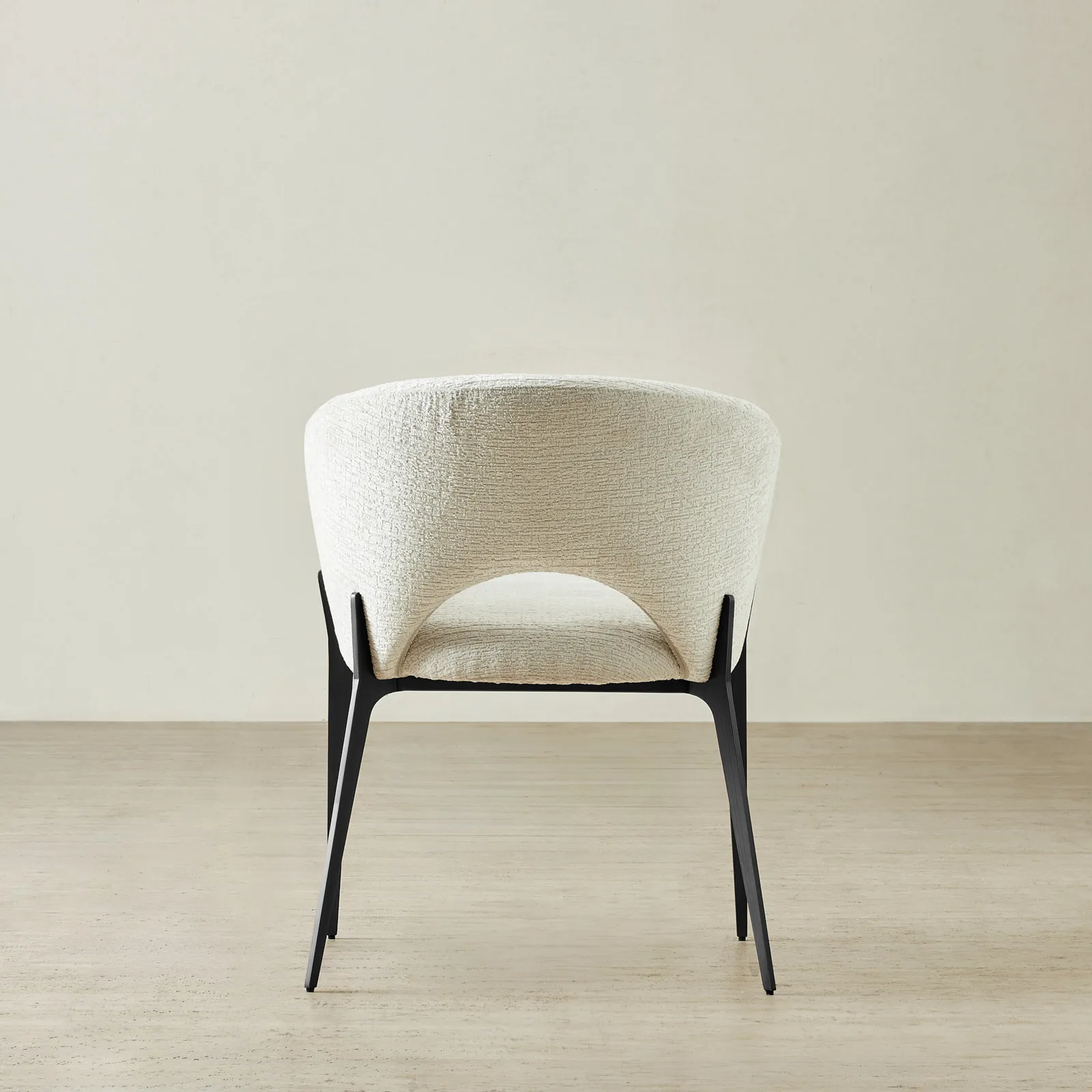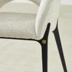 Bronze-finished legs provide a rich contrast to the cool-toned fabric, adding visual interest and warmth. Designed for both style and everyday use, this chair enhances any contemporary dining space.