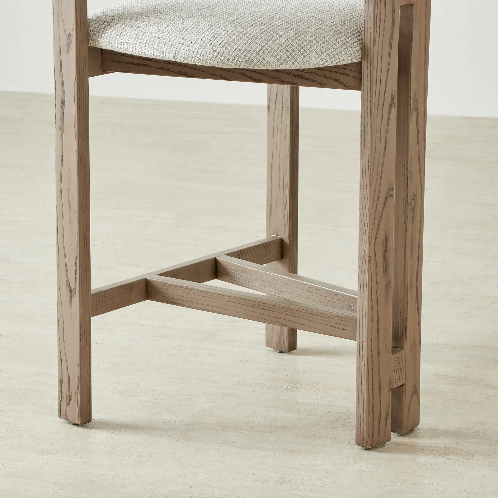 The open ashwood frame in a warm medium brown adds a natural touch. Perfect for contemporary kitchens or minimalist spaces. The integrated footrest adds support and stability, making extended sitting more comfortable.