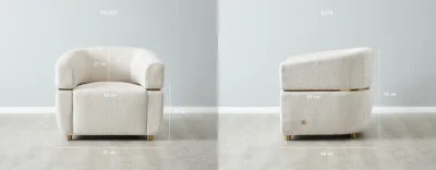 The Malta II Powder White Chenille Fabric Occasional Chair offers a modern take on the classic tub chair design. Upholstered in high-quality chenille fabric, it provides a plush, inviting seating experience on its sturdy wooden frame.