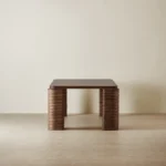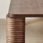 Gather around a table where design meets conversation. The Ophelia Dining Table captures attention with its mocha walnut veneer surface and thoughtfully curved edges.