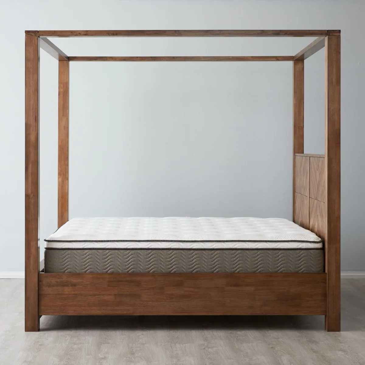 Step into the realm of timeless elegance with the Regina Wooden Veneer King Bed—a magnificent piece that pays homage to the past while bringing its stylistic charm to the present. Meticulously crafted with a combination of solid and veneer rubber wood, this bed exudes a special rustic aesthetic that adds warmth and character to your bedroom. The four posts stand tall, showcasing the craftsmanship and artistry that went into creating this remarkable piece.